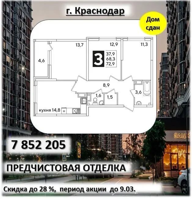 Горячие предложения продажи недвижимости в городах: Краснодар, Новороссийск, Реутов, Пушкино, Омск, Калуга