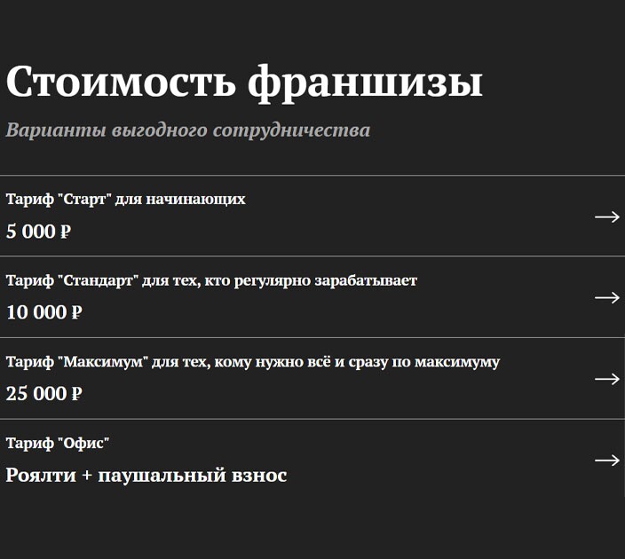 Стоимость франшизы