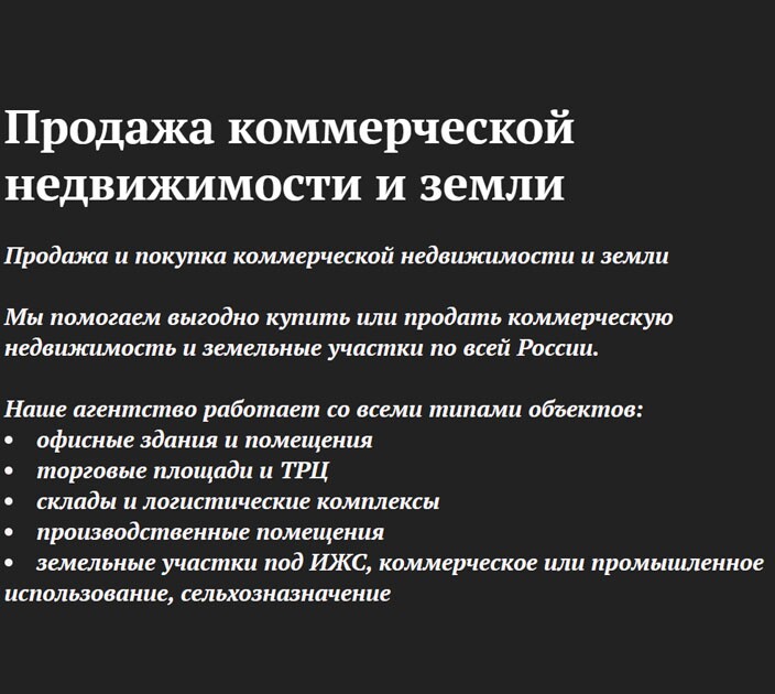 Мы помогаем выгодно купить или продать коммерческую недвижимость и земельные участки по всей России.